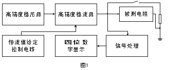其中穩(wěn)壓源是高精度低紋波電源,可提供10A的電流輸出。穩(wěn)流源輸出的電流受其分擋切換控制電路的控制。當測量選擇不同擋位時,輸出不同的穩(wěn)定電流。當恒流電流通過被測電阻時在被測電阻上產(chǎn)生穩(wěn)定的電壓信號,該信號經(jīng)計算機處理后由液晶顯示器直接顯示電阻值。
