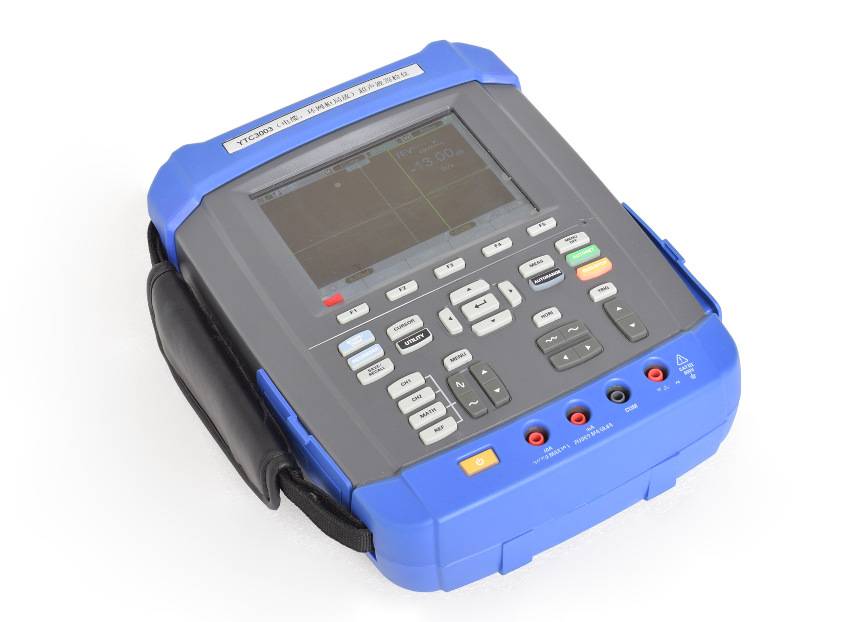 打開主機(jī),點(diǎn)擊選擇 CH1,將當(dāng)前通道選擇到通道 1 上,單擊“MENU”菜單鍵,在菜單欄按 F1鍵將“放電檢測”選擇為 TEV,按 F2 鍵設(shè)置是否“輸出電壓”及“單位”。使用復(fù)合式 TEV 傳感器進(jìn)行檢測時需要輸出電壓。