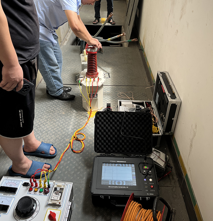此次客戶那邊遇到的麻煩是電纜在運(yùn)輸電過程中出現(xiàn)了供不上電情況,客戶那邊先自身對電纜做了基本的檢查,一時(shí)間也找不準(zhǔn)問題,于是就找到我司去幫忙找出電纜故障問題。我司趕到現(xiàn)場后,先咨詢了客戶相關(guān)的電纜類型的問題,如:電纜是否帶電,是帶鎧電纜還是不帶鎧的等等,摸清電纜的類型等一些相關(guān)信息后,我司技術(shù)人員便開始著手采取相應(yīng)的故障檢測措施了,首先我們做的是默認(rèn)的“低壓脈沖法”來檢測電纜故障情況,我們先是通過波形采樣,得到一個(gè)比較適合分析的波形后,然后對波形進(jìn)行分析,從波形我們可以知曉電纜的大致長度,以及故障點(diǎn)發(fā)生的大致一個(gè)區(qū)間位置,然后對那個(gè)故障區(qū)間位置進(jìn)行更進(jìn)一步的甄別查找,這樣便很大程度地減輕了工作人員查找故障的工作量,不過這次的電纜故障查找有點(diǎn)特殊,通過“低壓脈沖法”并不能很好地找出故障問題,于是后面又采取了“高壓閃絡(luò)法”進(jìn)行檢測,高壓閃絡(luò)過程,便需要利用到高壓升壓試驗(yàn)裝置來對電纜進(jìn)行升壓,從而來得到更明顯的波形。