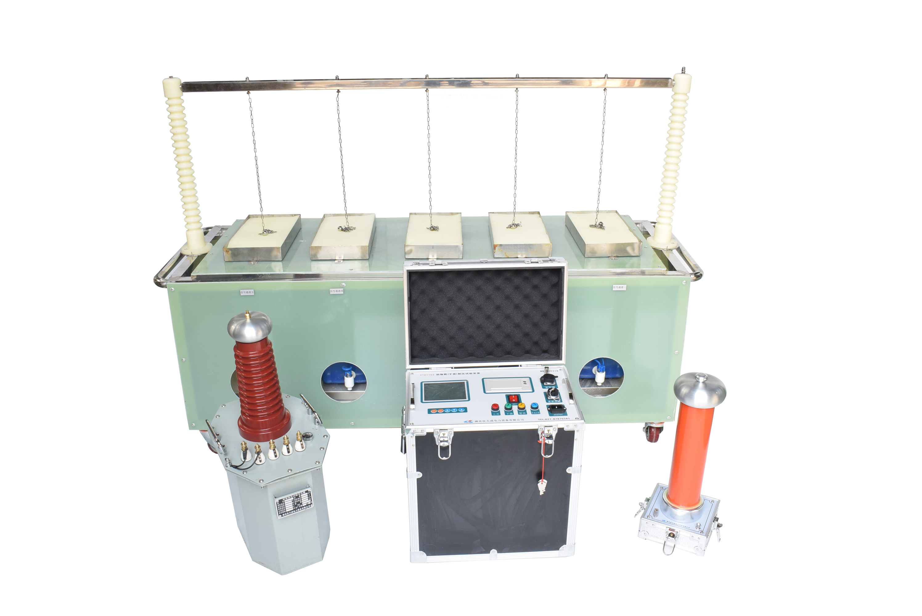 二、配套設(shè)備組:包含絕緣靴(手套)操作箱、試驗(yàn)變壓器和分壓器。