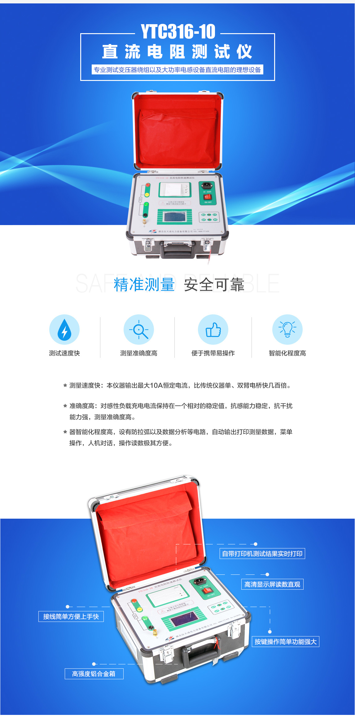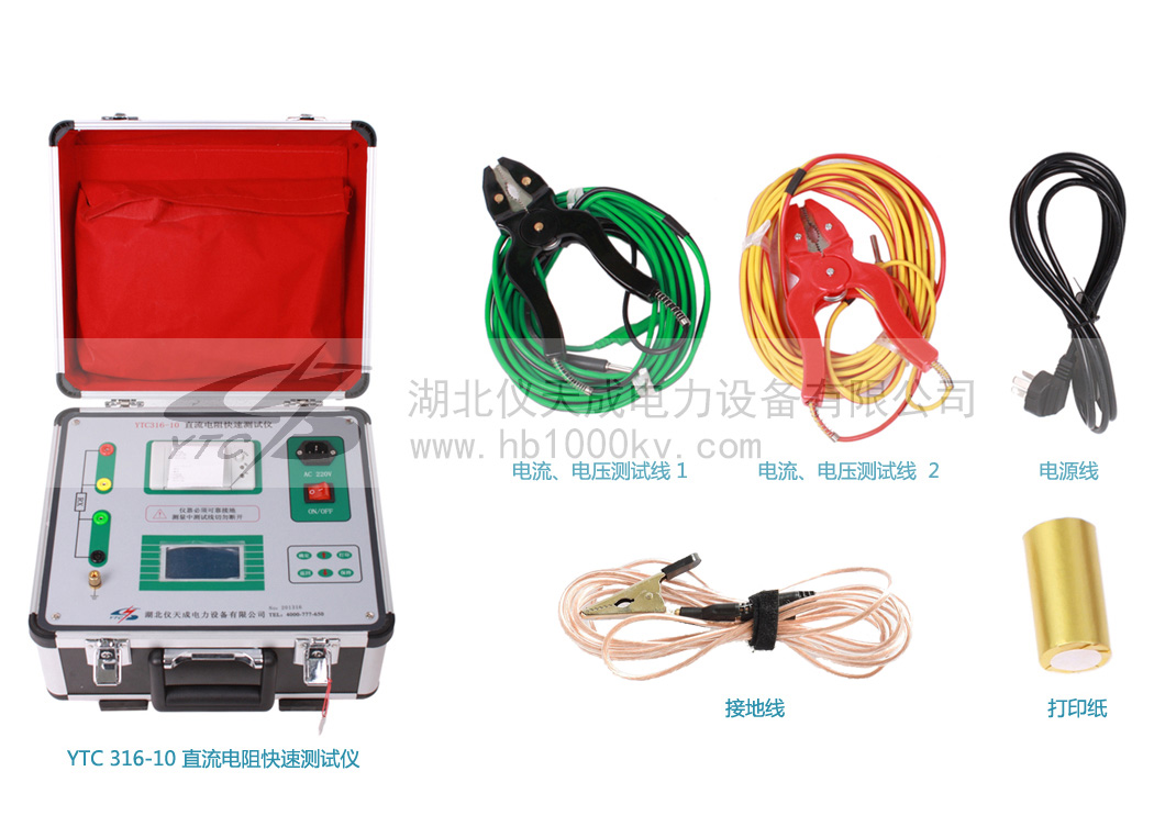 YTC316-10直流電阻測試儀采用電源技術,具有測量迅速、體積小巧、使用方便、測量精度高等特點,是測量變壓器繞組以及大功率電感設備直流電阻的設備。