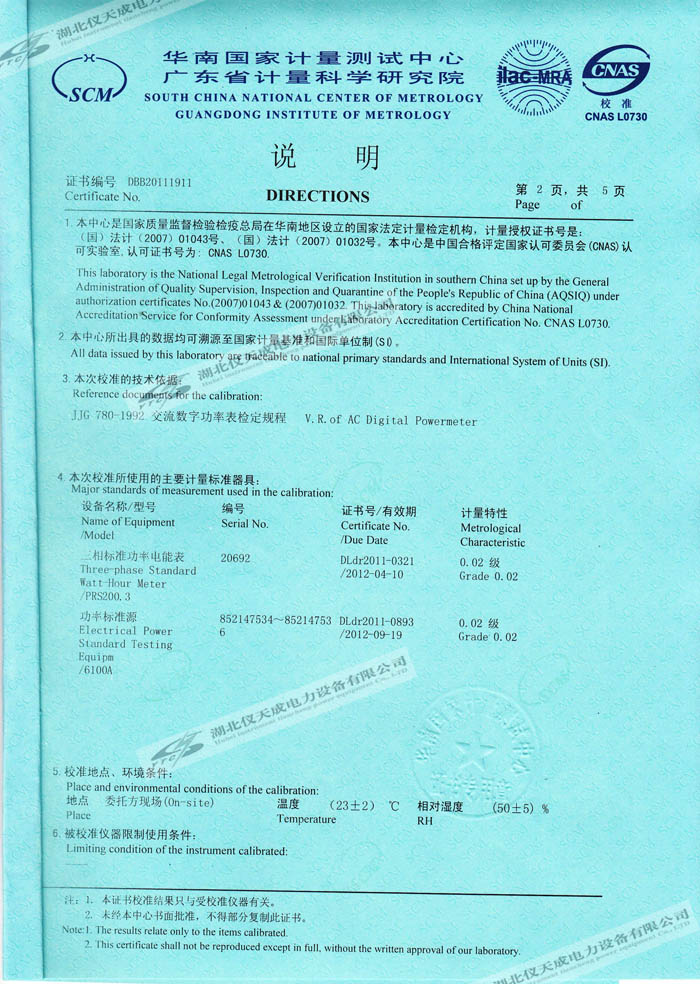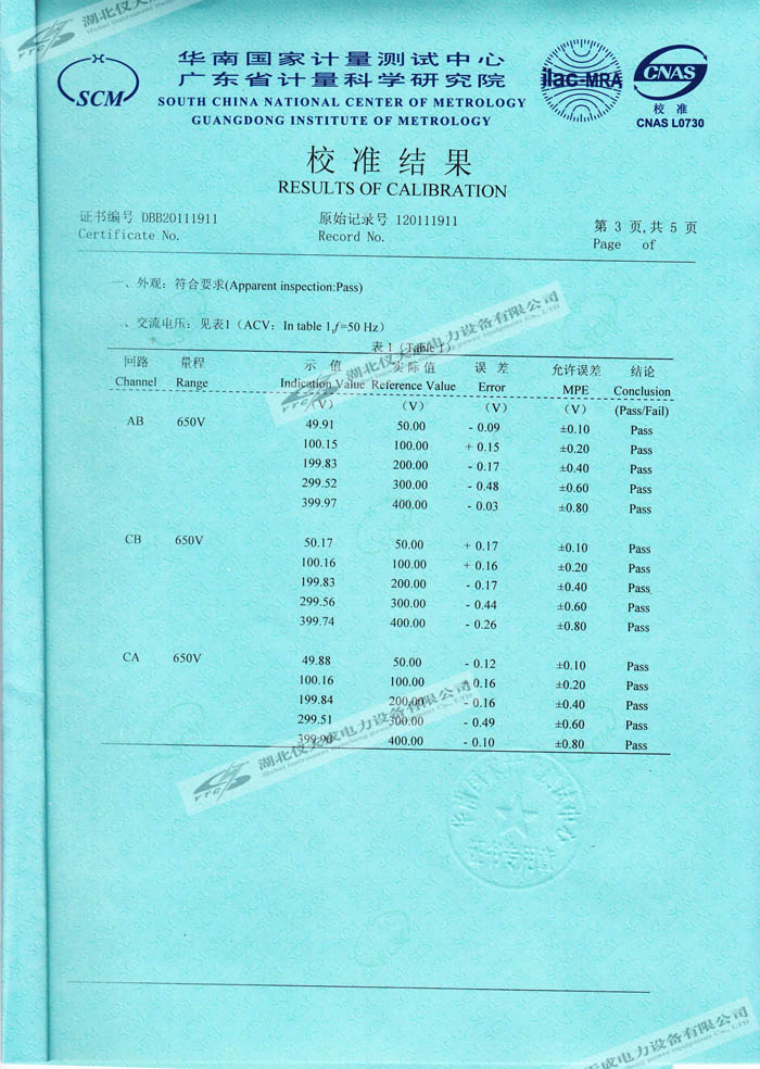 轉載:"YTC3100變壓器損耗參數測試儀的資質證書" 請注明來源于儀天成電力。 更多技術問題請致電儀天成電力客戶服務:027-87876585,技術部專線:027-87876585,在線客服:719388481